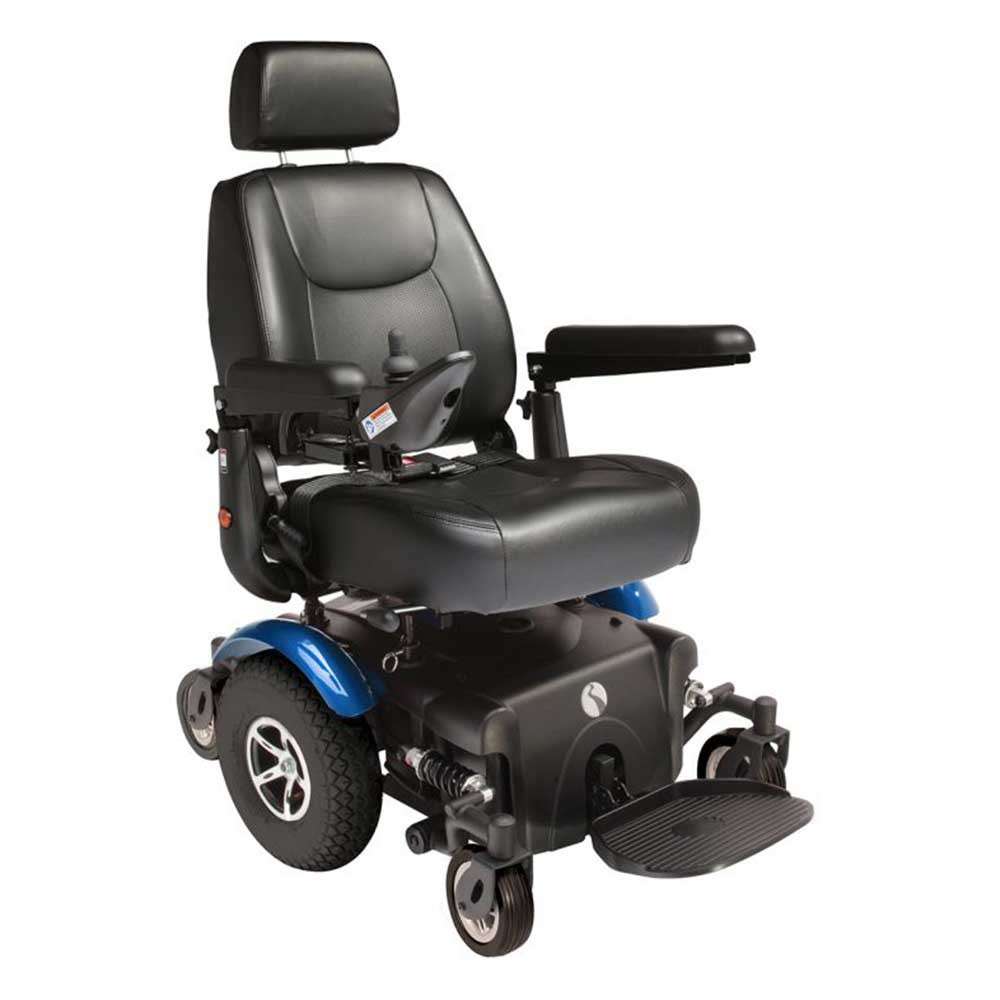 The Rascal Rivco Seat Lift is a heavy-duty 4 mph Mid-Wheel Drive outdoor/indoor powerchair, with durable full suspension and comfortable cushioned Captain’s seat with scissor lift mechanism to allow for exceptional manoeuvrability.