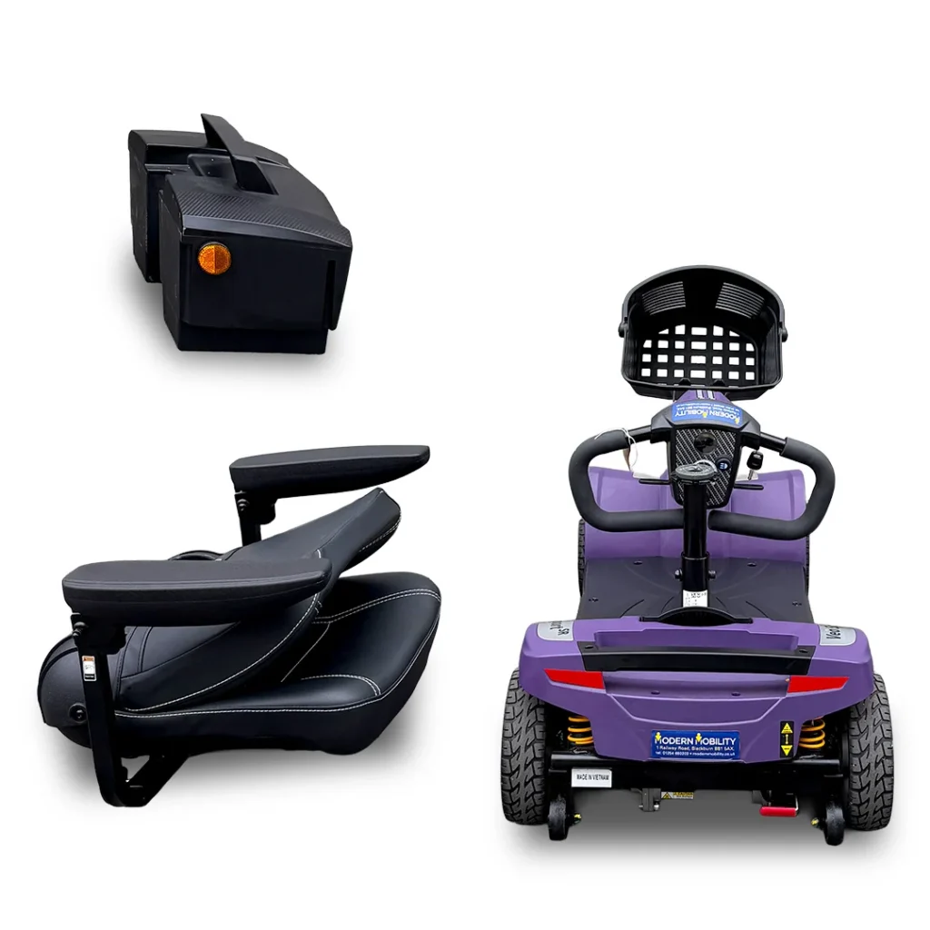 It’s all about the drive – The Rascal Veo Sport SR is fully loaded with features in a striking purple colour. A modern, sporty design with class leading all-round suspension. With 22Ah batteries, a superb capacity for a scooter of its size, affording a range of up to 18.2 miles. A padded delta tiller boasting a convenient charging point and luxury seat, detailed with unique white accent stitching, the Veo Sport SR is a real pleasure to ride.