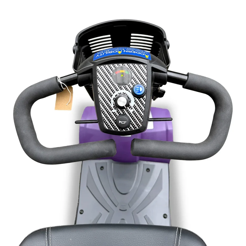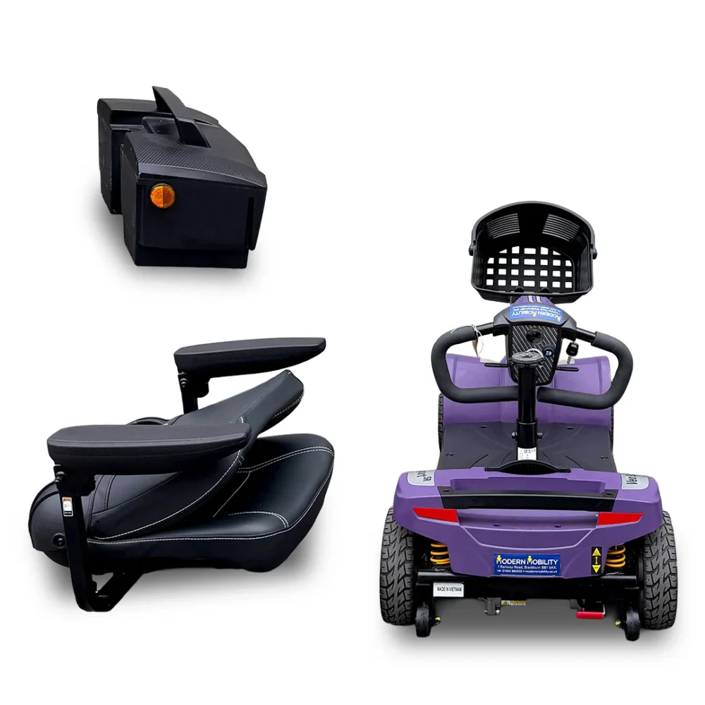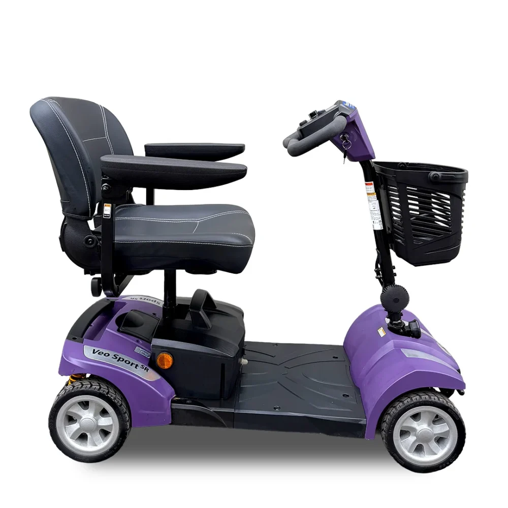 It’s all about the drive – The Rascal Veo Sport SR is fully loaded with features in a striking purple colour. A modern, sporty design with class leading all-round suspension. With 22Ah batteries, a superb capacity for a scooter of its size, affording a range of up to 18.2 miles. A padded delta tiller boasting a convenient charging point and luxury seat, detailed with unique white accent stitching, the Veo Sport SR is a real pleasure to ride.
